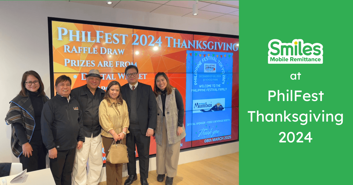 東京、日本 – 日本でNo.1のモバイル海外送金サービスである Smiles Mobile Remittance は、駐日フィリピン大使館で開催された「フィリピンフェスティバル2024スポンサー感謝イベント」に招待され、参加いたしました。このイベントは、日本最大級のフィリピン文化イベントであるフィリピンフェスティバルの成功を支えたパートナーやスポンサーの貢献を称えるために開催されました。